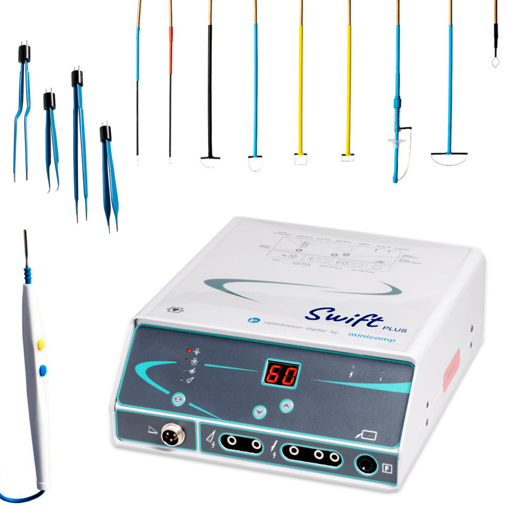 El electrobisturí SWIFT de Minicomp es el modelo ideal para intervenciones ambulatorias o de baja potencia que requieran un excelente control y delicadeza. Es el equipo más compacto y pequeño de Minicomp y se destaca por poseer la mejor relación precio-prestaciones en el mercado.